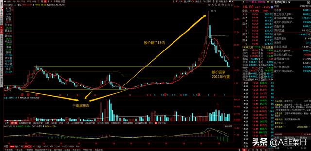 从图上看,股价下跌非常厉害,已经跌去高点的70%左右,目前并没有止跌的迹象。前一波牛市行情从2016年1月份开始启动,一直到2021年2月份,长达六年的大牛市,股价翻了15倍,年均复合增长达到63%,这期间股价基本一直在均线上方运行,这是做梦都不敢想的收益。