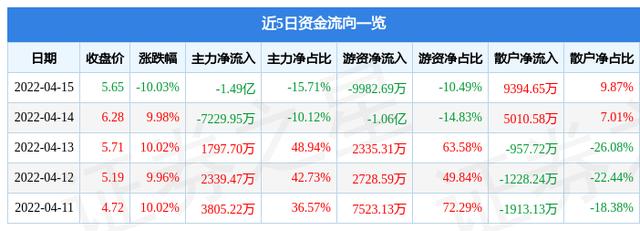 资金流向数据方面,上个交易日主力资金净流出1.49亿元,游资资金净流出9982.69万元,散户资金净流入9394.65万元。近5日资金流向一览见下表: