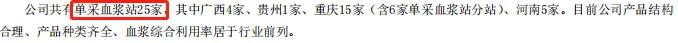单采血浆是指用离心机从人血液中分离出血浆,再把其余的成分回输给供血浆者的过程。我们国家对单采血浆制定了严格的技术标准和操作流程,且必须在单采血浆站中完成。因此,单采血浆站的数量和单站采浆能力决定了血液制品企业的原料供应,也就决定了公司的产能和业绩下限。