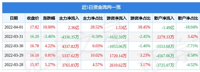 资金流向数据方面,当日主力资金净流入2.36亿元,游资资金净流入1.53亿元,散户资金净流出1.49亿元。近5日资金流向一览见下表: