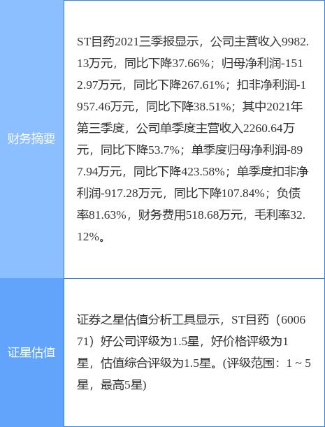 ST目药(600671)个股概况: