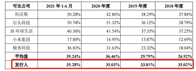 据招股书数据披露,报告期内,该公司同行业可比公司毛利率平均值分别为26.92%、29.79%、36.46%和39.24%,而萤石网络的主营业务毛利率则分别为35.02%、33.81%、35.03%和35.28%,公司毛利率总体与同行业可比公司平均水平相近。