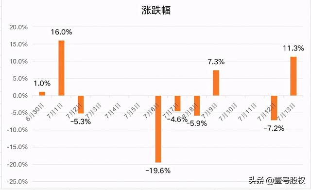 我们回顾一下滴滴从6月30日上市交易以来的每日涨跌幅会发现一个非常有意思的事情,上市首日的振幅虽然很大,但是最终的涨幅仅有1%,也就是比发行价高了1%而已,不过第二个交易日(7月1日)大涨了16%,这也是到目前为止涨幅最大的一天。