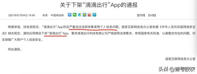 7月4日滴滴出行APP被下架,原因是存在严重违法违规收集使用个人信息的行为,这就说明滴滴在保护个人隐私方面是有严重的问题的,不过这天因为是假期,股市并没有交易。