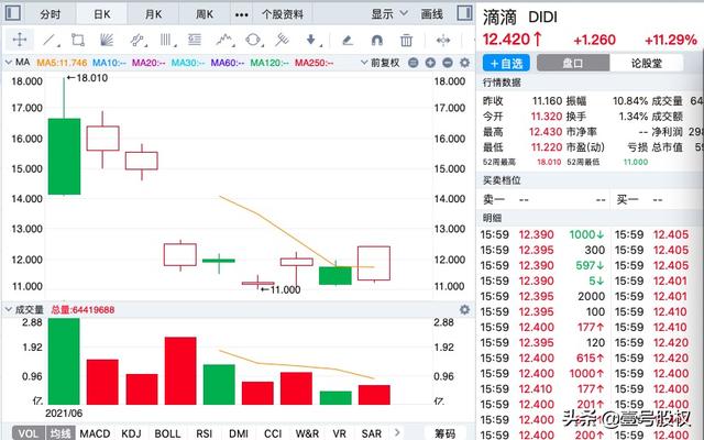 这并不是说下架25款APP对滴滴没有影响,其实这天原本就是上涨的,开盘40分钟涨幅近9%,但是在晚上10点11分的时候,25款App下架的消息出来了,股价一下子就跌了,只是下跌趋势维持了不到50分钟,然后恢复上涨态势,最终以上涨7.3%收盘。