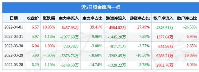 资金流向数据方面,上个交易日主力资金净流入6457.93万元,游资资金净流入4504.02万元,散户资金净流出4346.51万元。近5日资金流向一览见下表: