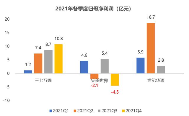 2021年三七互娱表现最为出色,世纪华通原地踏步,完美世界暂时掉队。