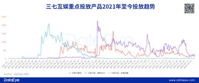 比如,三七互娱旗下的《斗罗大陆:魂师对决》以及《叫我大掌柜》实行持续投放策略,而《斗罗大陆:武魂觉醒》投放集中在21年3-7月,此后基本不做投放。