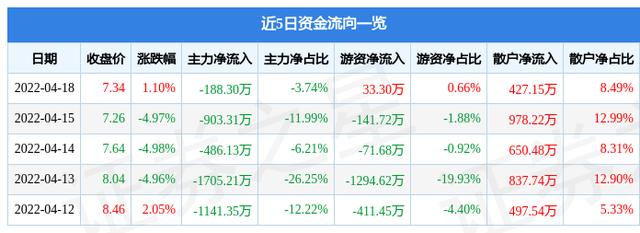 资金流向数据方面,上个交易日主力资金净流出188.3万元,游资资金净流入33.3万元,散户资金净流入427.15万元。近5日资金流向一览见下表: