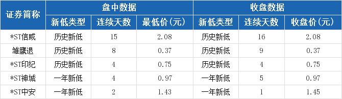 收盘价与盘中价均创新低个股