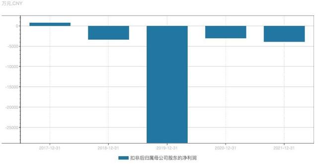 同时,该公司扣非归母净利润已连续四年为负值,2018年至2021年四年间扣非归母净利润分别为-3409.14万元、-28864.4万元、-3054.82万元和-3944.65万元。