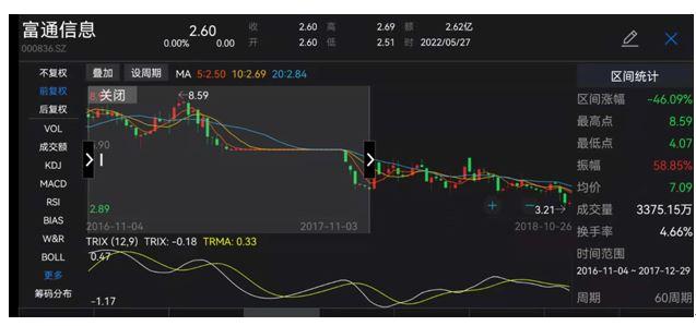 2017年11月24日公告复牌后,鑫茂科技连续大跌,在当年12月29日股价一度下挫至4.07元,与停牌前最高点8.59元相比,股价接近腰斩,区间振幅高达59%。