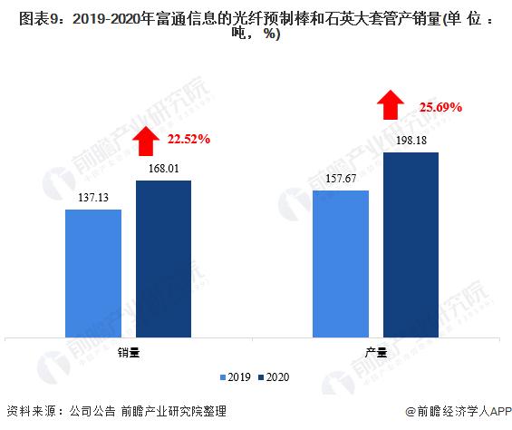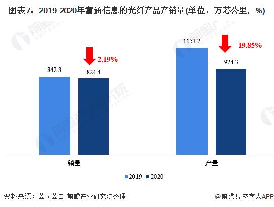 根据公司公告的数据显示,2019年-2020年公司的光纤产品产销量呈现下跌趋势;从产量来看,从2019年的1153.16万芯公里下跌至2020年的924.27万芯公里,下降约19.85%;