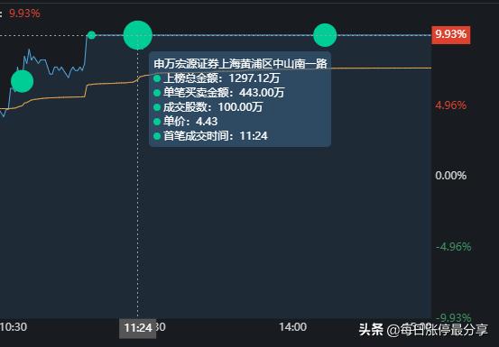 第三位,银河绍兴,顶级游资赵老哥的席位之一,周五买入4.42万手,均价4.43,合计1962万,买点全在涨停板上,选择排队成交。