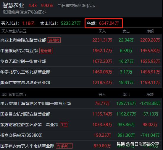 原文标题:智慧农业再次涨停,3大游资联手入场,金陵东路买入2231万