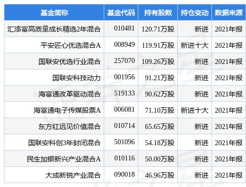 根据2021年报基金重仓股数据,重仓该股的基金共173家,其中持有数量最多的基金为汇添富高质量成长精选2年混合。汇添富高质量成长精选2年混合目前规模为44.48亿元,最新净值0.6834(3月22日),较上一日下跌0.9%,近一年下跌27.0%。该基金现任基金经理为刘江。刘江在任的公募基金包括:汇添富医疗服务混合A,管理时间为2015年6月18日至今,期间收益率为65.1%;汇添富全球医疗混合人民币,管理时间为2017年8月16日至今,期间收益率为85.6%;汇添富核心精选混合(LOF),管理时间为2018年7月5日至今,期间收益率为-15.42%;汇添富科技创新混合A,管理时间为2019年5月6日至今,期间收益率为72.01%。
