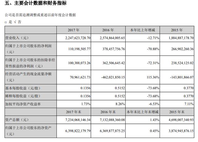早在2017年华录百纳的业绩就出现了明显的下降,当年实现营业收入22.48亿元,同比2016年的25.75亿元下降12.75%;实现净利润1.1亿元,同比2016年的3.78亿元下降70.88%。