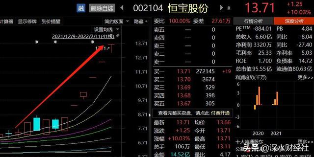2月11日,恒宝股份(002104)再封涨停,报收于13.71元/股,最近10个交易日内录得8个涨停,累计涨幅为84.77%。