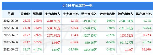 资金流向数据方面,6月9日主力资金净流入4701.99万元,游资资金净流出1998.67万元,散户资金净流出2703.31万元。