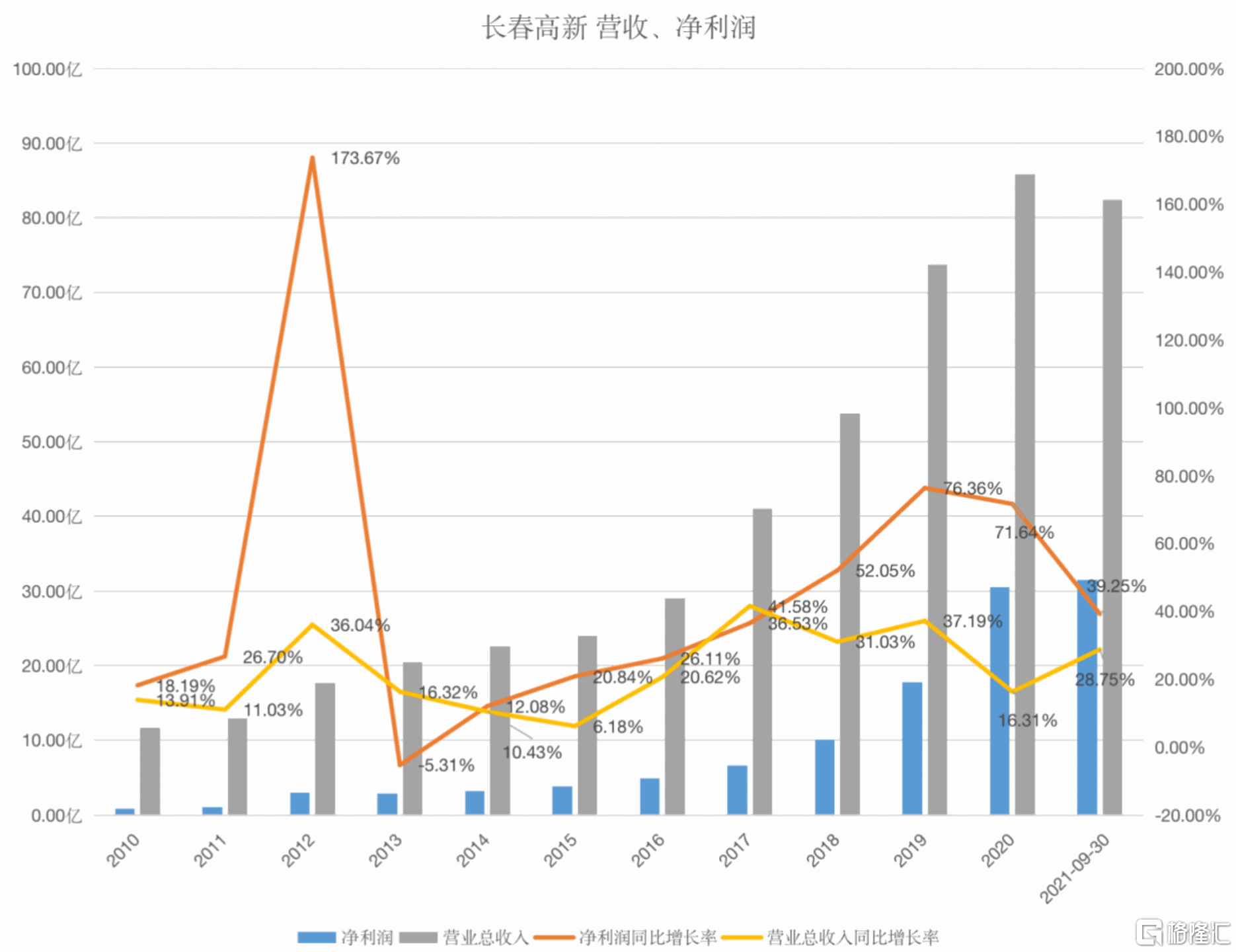分拆来看,金赛药业增长强劲,利润率继续提升,理性看待生长激素“地方集采”。2021前三季度,金赛药业收入61.61亿元,同比+45%,净利润30.42亿元,同比+52.94%;2021Q3,金赛药业收入23.73亿元,同比+38.45%,净利润11.83亿元,同比+37.56%。