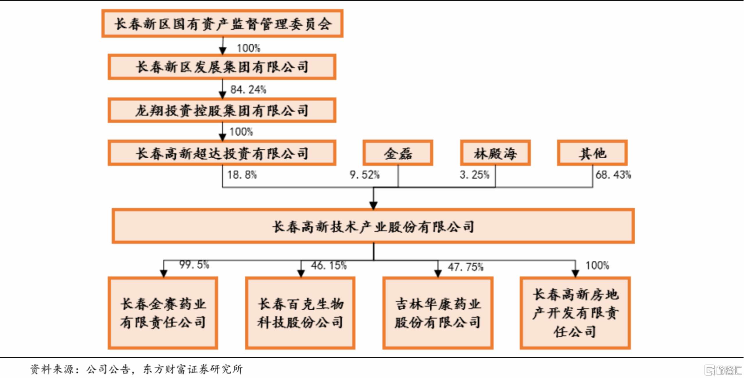 长春高新实际控制人为为长春新区国有资产监督管理委员会。四家子公司,核心子公司金赛药业负责生长激素等重组蛋白的研发销售,百克生物聚焦于疫苗生产,华康药业专注中医药产品的研发销售,高新地产负责房地产开发等业务。