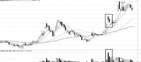 (2)在主力洗盘阶段,K线组合往往是大阴不断,并且收阴的次数多,且每次收阴时都伴有巨大的成交量,好像庄家正在大肆出货。其实不然。仔细观察一下就会发现,当出现以上巨量大阴时,股价很少跌破10日移动平均线,短期移动平均线对股价构成强大支撑,庄家低位回补的迹象一目了然,这就是技术人士所说的“巨量长阴价不跌,主力洗盘必有涨”。