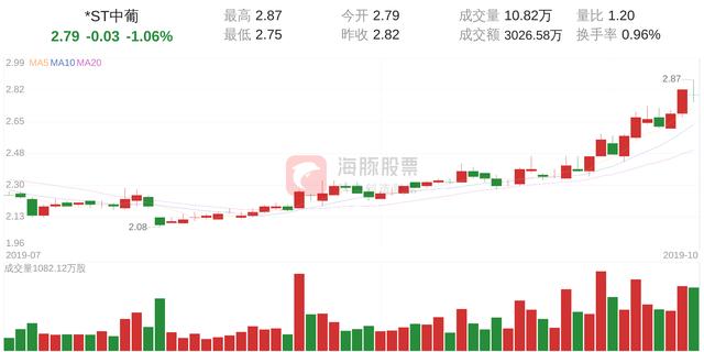 *ST中葡今日下跌1.06%,股价为2.79元,成交金额为3026.58万元,成交10万手,换手率为0.96%。