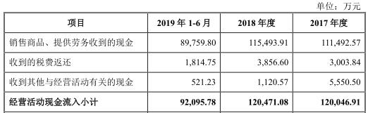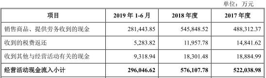 资料显示,2017年、2018年及2019年1-6月,申联环保分别实现营业收入44.95亿元、46.41亿元及24.80亿元,归属于母公司所有者的净利润3.69亿元、6.00亿元及4.59亿元,经营活动产生的现金流量净额4.73亿元、13.19亿元和5.49亿元,其中,销售商品、提供劳务收到的现金分别为48.83亿元、54.58亿元、28.14亿元。