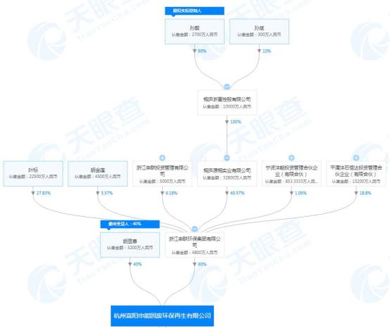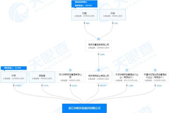 首先来看申联环保,申联环保的第一大股东为桐庐源桐,持股比例分别为40.57%,而桐庐浙富控股有限公司对桐庐源桐100%持股,孙毅则持有桐庐浙富控股有限公司90%股权,为其实际控制人。也就是说,浙富控股的实控人孙毅,也是申联环保的实控人。桐庐浙富控股有限公司另一控股股东为孙斌,持股比例为10%。