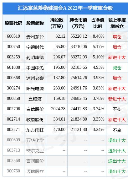 汇添富蓝筹稳健混合A的前十大重仓股如下: