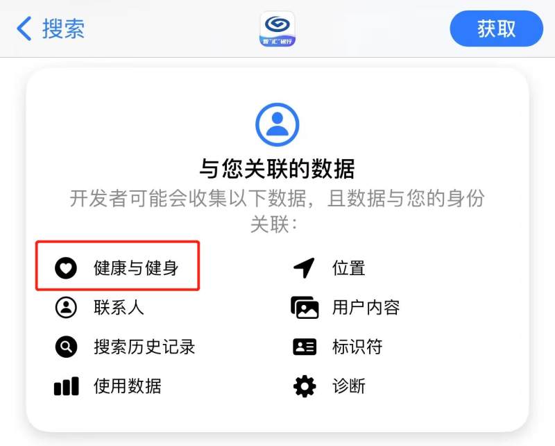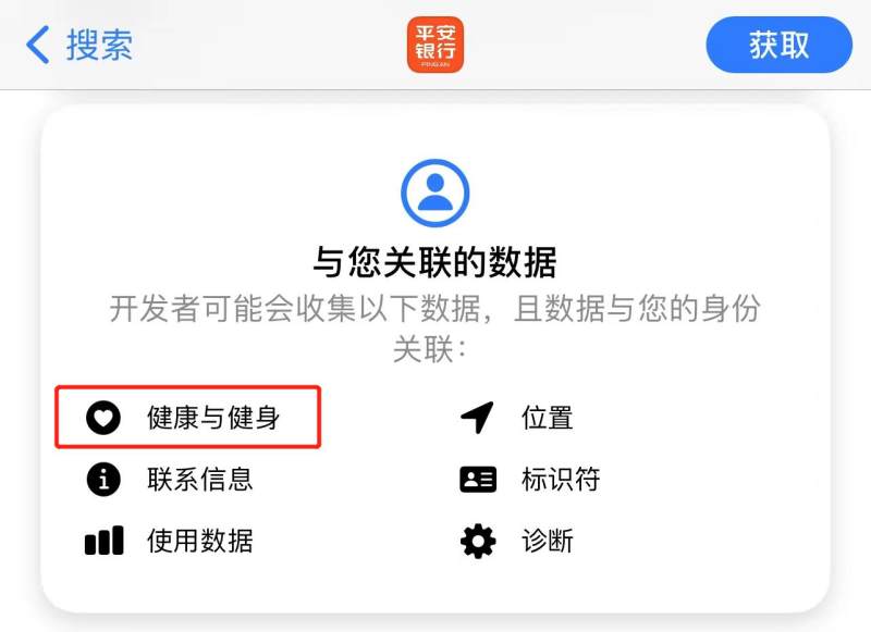 值得一提的是,蓝鲸财经在手机应用商店搜索了其他多家商业银行APP,查看了其在用户隐私规范方面的相关设置。查询发现,除兴业银行以外,股份行中还有中信银行、平安银行、广发银行也会对用户“健康与健身”数据进行收集。