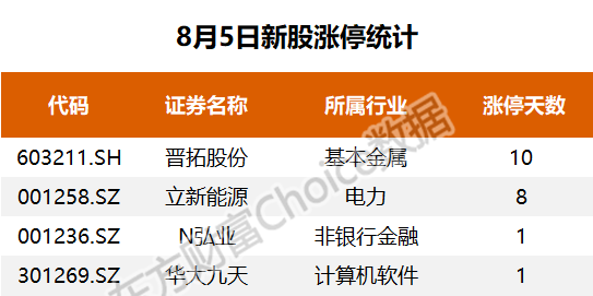 8月5日新股涨停统计