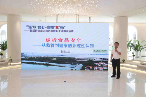 民以食为天,食以安为先。食品安全不仅是企业的生产制造准则,更是关于民生幸福的基石。现场,全国先进工作者、市海洋与渔业研究所质量安全室主任林功师结合多年经验,从国家食品安全战略、水产品的危害来源、科技赋能食安监测三个方面,讲述一线科技工作者如何以匠心守护“舌尖上的安全”。同翔高新城片区指挥部投资促进部主任陈达龙则从监管角度,以漫谈式浅析带大家走出日常生活的食品安全误区,辅以通俗易懂的正确操作,让食品安全科普入脑入心,同时传递了健康生活理念。