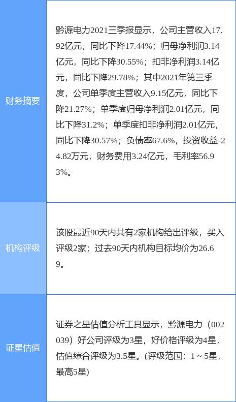 黔源电力(002039)个股概况: