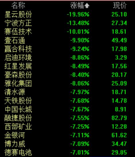 星云股份跌超13%,宁波方正、赛伍技术、启迪环境、欣旺达等跟跌。