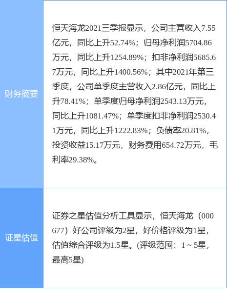 1月21日盘中消息,10点8分恒天海龙(000677)封涨停板。目前价格3.53,上涨9.97%。