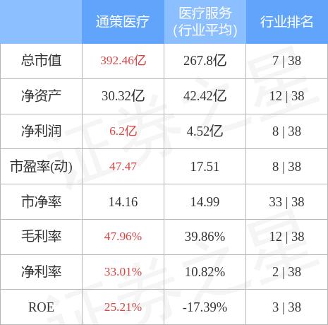 通策医疗主要指标及行业内排名如下: