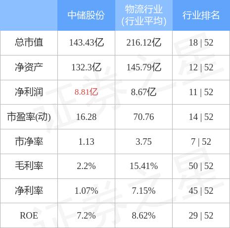4月12日盘中消息,9点34分中储股份(600787)封涨停板。目前价格6.52,上涨9.95%。其所属行业物流目前下跌。领涨股为新宁物流。该股为天津自贸区,冷链,智能制造概念热股,当日天津自贸区概念上涨0.84%,冷链概念上涨0.07%。