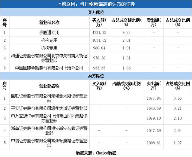 今日榜单上出现了一家实力营业部。买五为中国国际金融上海分公司,该席位买入955.55万元。近三个月内该席位共上榜593次,实力排名第12。中国国际金融上海分公司今日还参与了国光电气(净买额-5105.10万元),芯源微(净买额-2792.42万元),兴瑞科技(净买额1445.41万元)等7只个股。