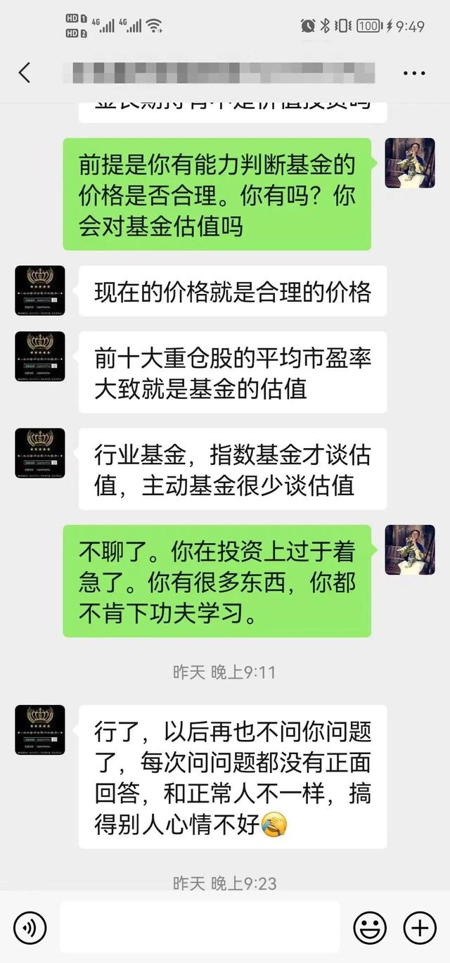 结果,几次聊天后,我发现他明明财务报表都看不懂,却一直不肯承认自己不懂价值投资。明明对行情大跌心存恐惧,却不肯承认。硬说自己只是探讨价值投资问题。最终由于我多次的“刻薄”发问,他决定不再忍我了。