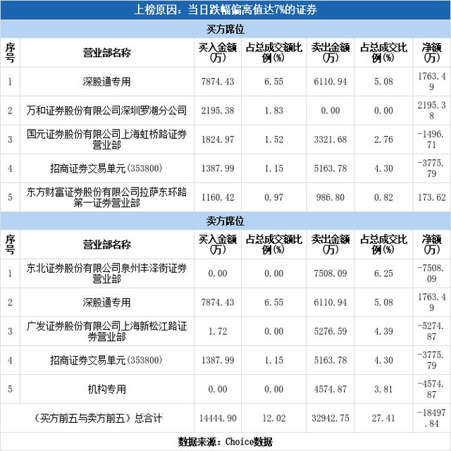 买四、卖四均为招商证券交易单元(353800),该营业部买入1387.99万元,卖出5163.78万元,净买额为-3775.79万元。近三个月内该席位共上榜371次,实力排名第11。招商证券交易单元(353800)今日还参与了读客文化(净买额1148.11万元),二三四五(净买额-1073.33万元),翰宇药业(净买额1050.19万元)三只个股。