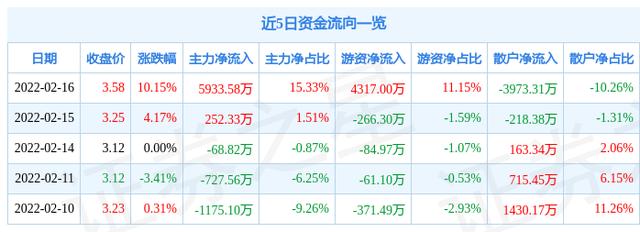 资金流向数据方面,上个交易日主力资金净流入5933.58万元,游资资金净流入4317.0万元,散户资金净流出3973.31万元。近5日资金流向一览见下表: