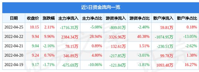资金流向数据方面,4月25日主力资金净流出1716.35万元,游资资金净流出809.01万元,散户资金净流入59.81万元。