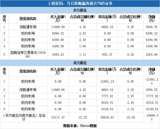 龙虎榜数据显示,今日共7个机构席位出现在龙虎榜单上,分别位列买二、买三、买四、卖一、卖三、卖四、卖五,合计净卖出2.40亿元,占龙虎榜净卖额的128.46%。除此之外还有山西汾酒、新华网、中煤能源等22只个股榜单上出现了机构的身影,其中9家呈现机构净买入,获净买入最多的是中煤能源,净买额为4541.18万元;13家呈现机构净卖出,其中遭净卖出最高的为山西汾酒,净卖额为5.05亿元。