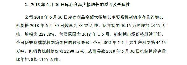 与此同时,因机制糖市场价格继续下行,2018年上半年南宁糖业采取减缓机制糖销售的政策,这也造成机制糖库存较大。