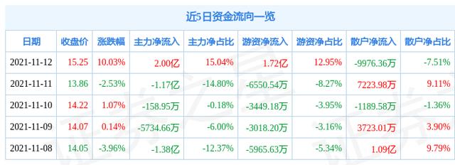 资金流向数据方面,当日主力资金净流入2.0亿元,游资资金净流入1.72亿元,散户资金净流出9976.36万元。近5日资金流向一览见下表: