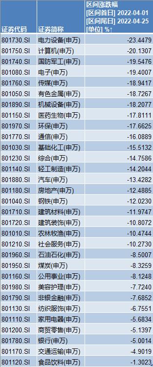 4月份无一板块上涨,电力设备、计算机跌超20%