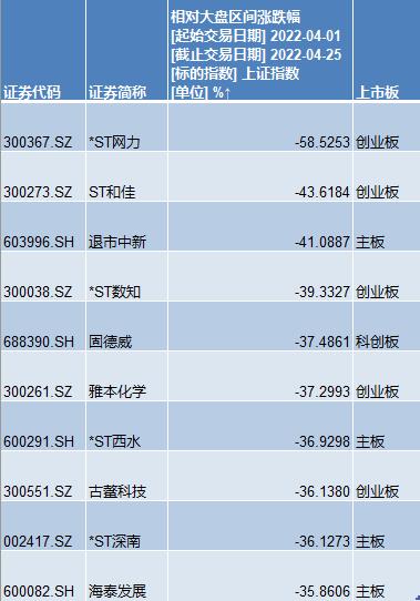 *ST数知(300038)、固德威(688390)、雅本化学(300261)等均跑输大盘逾30%。