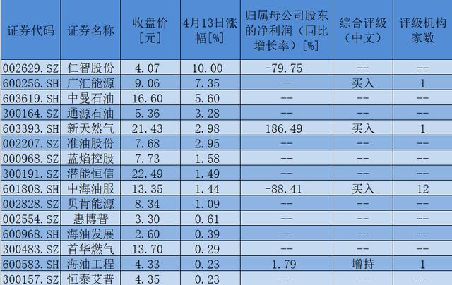表:4月13日,油气开采及服务板块实现上涨个股一览