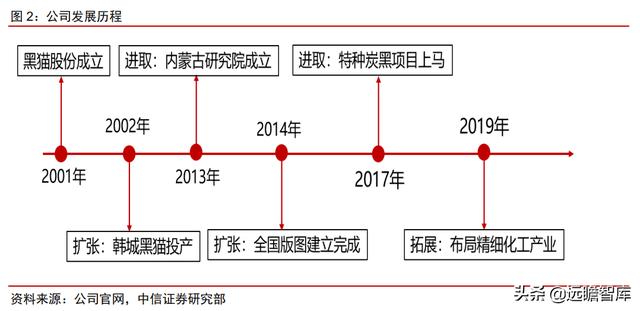 黑猫股份成立于2001年 7 月,主要从事炭黑、焦油精制和白炭黑等产品的生产与销售。